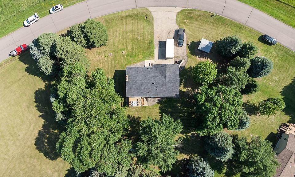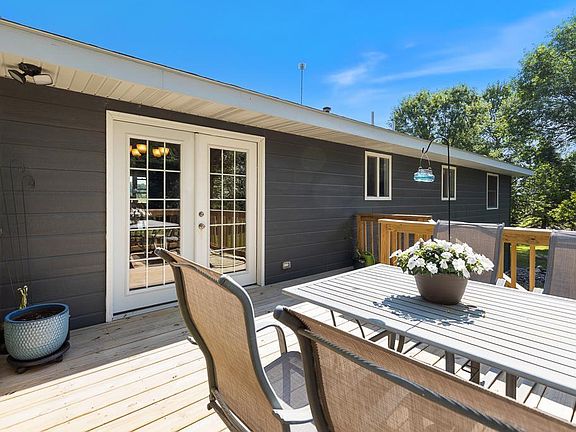 Welcome to this beautifully updated split-level home in the highly desirable Rolling Hills Estate neighborhood, just north of Montevideo. Set on a spacious lot with peaceful country views, this property features a serene backyard surrounded by mature trees and a brand-new deck added in 2025—perfect for outdoor relaxation and entertaining. The home’s exterior has seen major upgrades including Smart Board siding, new windows, exterior doors in 2021, a new roof in 2022, soffit, fascia, and new garage doors in 2023—delivering both curb appeal and long-term value. Inside, the upper level offers a warm and inviting layout with three bedrooms, a full bathroom, 1/2 bath on suite, and a bright living room. The open dining area connects directly to the deck, offering a seamless indoor-outdoor flow. The kitchen is equipped with brand new appliances adding both style and functionality. The lower level features a cozy family room with a fireplace, a half bathroom (plumbed for future shower to make it 3/4), and a laundry room with walkout access to the backyard. The attached tuck-under garage offers convenience and additional storage. Comfort is further enhanced with fully updated HVAC systems in 2021/2022.
