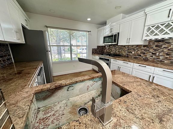 Engineered laminate floorsCovered backyard porchWine rackCrown moldingCustom marble counter topsTankless water heaterCustom lightings