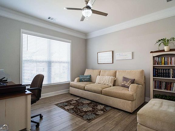 Stunning, "practically new", and move-in ready, this home sits on a private cul-de-sac in the highly sought-after Reunion Golf and Country Club Community. At your arrival, a beautifully crafted exterior, a welcoming front porch, and a green and wooded private backyard. Step-into this thoughtful floor plan by Pulte to a hallway that leads you to the elegant trim work and tray ceiling in the separate dining room, a generously-sized study enhanced by contemporary French glass doors, crown molding and luxury vinyl flooring throughout the main floor. The open-concept gourmet and fully renovated kitchen with quartzite countertops, has stainless steel appliances, a large island with breakfast bar and underneath cabinets and a glass tile backsplash. A unique extended kitchen room offers more cabinets and a counter top ideal for your coffee area. Being the heart of the home, the kitchen seamlessly connects to a cheerful breakfast room, an elegant living room complete with fireplace, and a seven large windows with a glass outdoor "Bright Sunroom". The second floor offers an inviting and convenient LVP floored loft that takes you to the sophisticated Primary Suite which includes crown molding, tray ceilings a sitting room retreat, boasts two walk-in closets and a master bathroom with an oversized tiled shower with bench, and rainfall showerhead. An adjacent laundry room with sink. Two secondary bedrooms that share a large closet and a double vanity bathroom, plus a third guest/suite bedroom with its full bath and walk-in closet. All the bathrooms feature quartzite countertops for a touch of elegance. The tandem garage also offers a convenient sink for all your exterior projects, and last but not least an irrigation system that ensures a lush, well-maintained lawn year-round. This home is located in the original section of Reunion, with the safety feature of a Fire Station within the community. It provides Golf Cart access to the Braselton Lifepath for all the nearby shopping, school and dining activities, and it is just five minutes from the advanced Northeast Georgia Hospital and top rated clinical and medical facilities.**Reunion Golf & Country Club** is one of the premier golf courses communities in North Georgia and boasts unique amenities that include a Clubhouse, Restaurant, Swimming Pool with Water Slide and a Kiddie Pool, Lighted Tennis &, Pickleball Courts, top-of-the line private 18-hole Golf Course that highlights a hole number seven, a par five, with two greens, Workout Facility, a Driving Range, Playground, Parks, and sidewalks throughout the neighborhood for walking or jogging. Quick access to main highways such as I-85, I-985, Peachtree Industrial, and Highway 53. Make this vacation lifestyle home, yours!