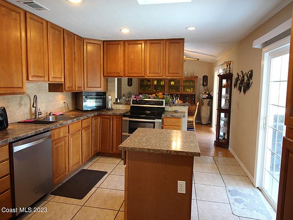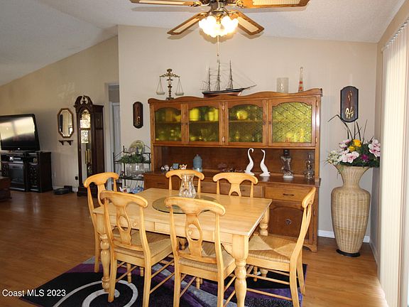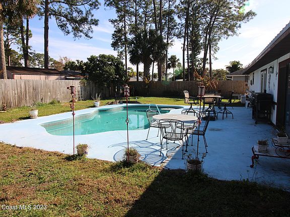 3/2 Pool Home in Port St. John. NEW METAL ROOF. Open split bedroom floor plan with vaulted ceilings in the living and dining areas. Walk-in closet in the master bedroom. Tile & laminate flooring throughout. Fenced backyard with large patio area by the inground pool. 2 car garage with extra storage area.