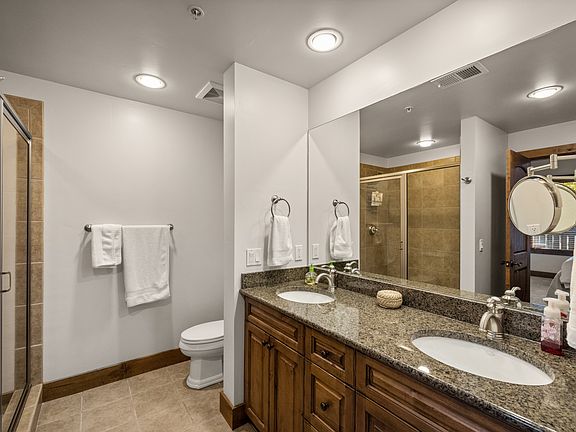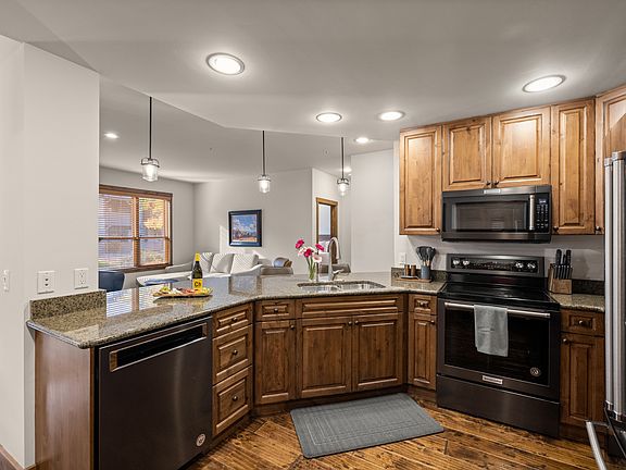 Welcome to this beautiful 2 bedroom, 2 bath condo in one of Whitefish's most desirable communities, the Monterra. This serene mountain retreat is designed for relaxation, with cozy living spaces, enchanting neighborhood views and top-notch community amenities. Kick off your boots in the entryway and step into the inviting living room, where you can cozy up by the gas fireplace, enjoy a movie on the flatscreen TV, sink into the comfortable couch, or relax in one of two leather lounge chairs perfect for winding down after a day of exploring or hitting the slopes. Just outside, the private patio offers a BBQ and seating, where you can enjoy the fresh mountain air and picturesque scenery. The fully equipped kitchen features stainless steel appliances and barstool seating for two, making it easy to whip up a snack or share a casual drink. An adjacent dining room, with seating for four makes the perfect space for enjoying a sumptuous meal. The primary bedroom includes a king bed, en-suite bathroom with dual vanities and shower, plus a spacious walk-in closet. The second bedroom offers a queen bed with plush bedding and a flatscreen TV, with the second bathroom located just across the hall and complete with a shower/tub combo. Additional features include air conditioning, in-unit washer and dryer, and convenient onsite parking. The Monterra community amenities include: a clubhouse, fitness room, outdoor swimming pool, spa, outdoor fire pit, tennis courts, and theater. Stroll through the community on peaceful paths that wind past meandering creeks and cross footbridges. Conveniently located next to biking and walking trails and just minutes to downtown Whitefish, Kalispell, Glacier National Park and Whitefish Mountain Resort! Just moments away from Whitefish's top activities, this Monterra condo is ideal for extended stays. Book now to experience the peaceful charm of this beautiful mountain retreat. Sleeping Accommodations (Maximum 4 guests):