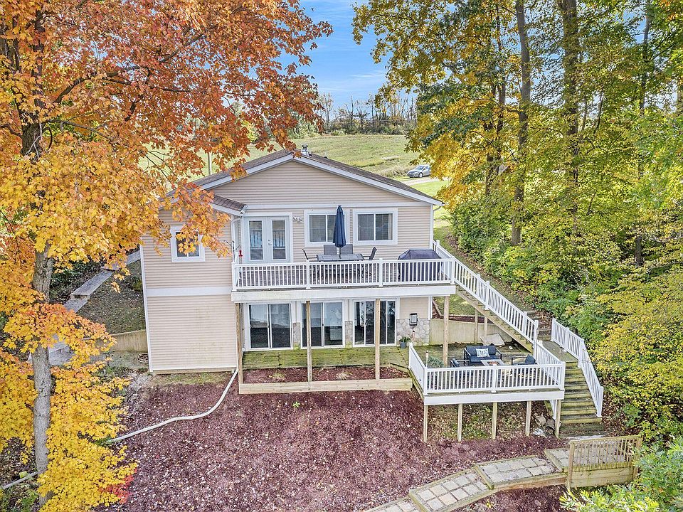 Peace and Tranquility are what welcome you home to this amazing lakefront home. This ranch walkout has been meticulously maintained. Upon entering the home you will find an amazing drop zone for all your items. As you proceed down the hall it opens up into a large expansive area with a fabulous kitchen and large bar area for food prep and serving. Also included are all the kitchen appliances. The living room is situated just off the kitchen area which is fantastic for holiday entertaining. The sliders off the kitchen open onto the deck and the views are divine! Also included on this floor are the primary bedroom, full bath, 2nd bedroom and laundry room. The walkout level offers up more fantastic views of the lake and includes a family room with gas log fireplace, 3rd bedroom, office