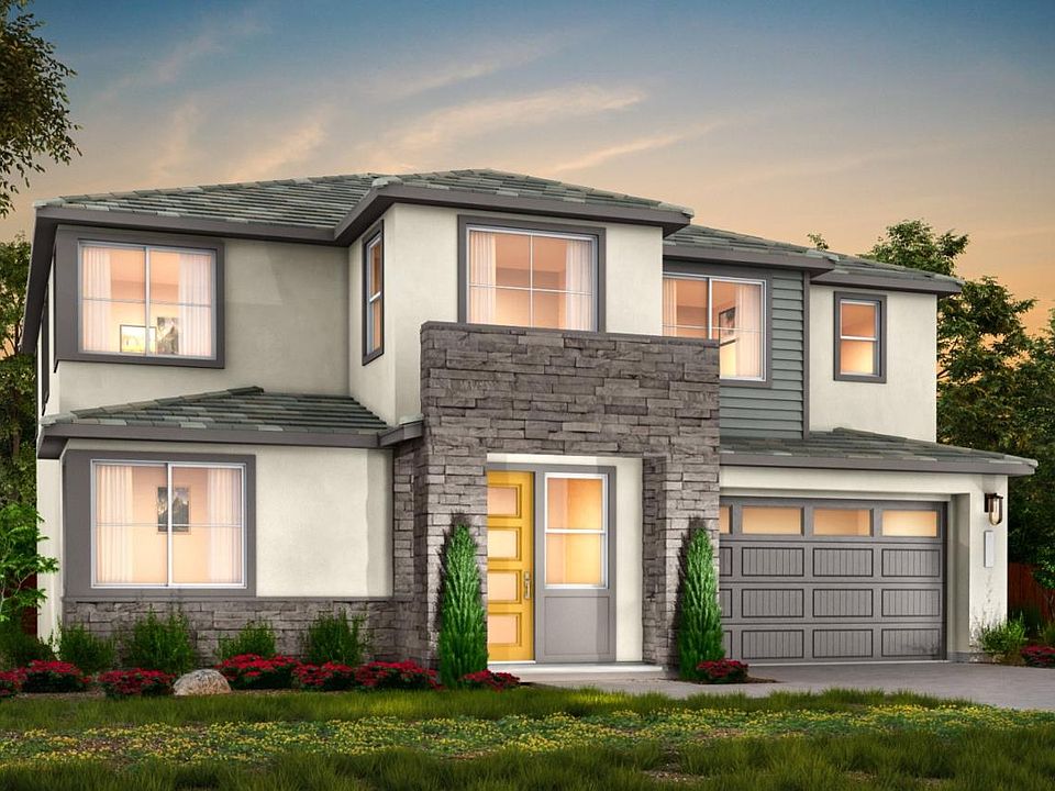 New construction at Glisten at One Lake | Homesite 356 | Plan 1. Beautiful two-story home with 4 bedrooms and 3 baths. Open floorplan featuring a gourmet chefs kitchen with walk-in pantry. Primary suite with generous walk-in closet. Also includes an upstairs loft and laundry room.
