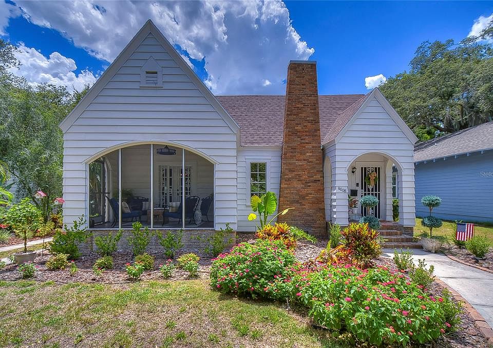 STUNNING HISTORIC, 1938 Tudor Home in vibrant Hampton Terrace, a neighborhood within Extremely desirable SEMINOLE HEIGHTS. This CHARMING home has been restored, bringing the past and the present together. You will be impressed with the 3 SPACIOUS BEDROOMS, 1 FULL BATH. REAL OAK floors, UPDATED GOURMET Kitchen with STAINLESS STEEL APPLIANCES, MARBLE Countertops, SUBWAY TILE BACKSPLASH & WINE FRIDGE. The REMODELED BATHROOM offers, DESIGNER Khoeler fixtures, SUBWAY TILE, and built in medicine cabinet. ALL CLOSETS HAVE ELFA BUILT-IN CLOSET SYSTEMS. You will LOVE the the screened in front porch, with French doors, perfect for your morning coffee. There is long Driveway with over-sized detached 1 car garage on a short, tucked away lovely street near Historic Lake Roberta. Other features include: Drop down stairs to attic, NEW R-30 insulation and accessible storage in the attic space, high-end ceiling fans, light fixtures, hardware, vent covers, a water purification system & new outside deck. ENTERTAINING IS A DREAM with mature gardens containing lush landscaping and plenty of outdoor living space with the outdoor FIREPIT AREA and deck. Make guacamole with your avocados, Margaritas from the lime tree, All from your very own yard! PLEASE SEE Attachment for full list of LUXURY UPGRADES and DESIGNER FINISHES. HVAC installed 2019, Solar Panels installed 2022, Roof 2010, and roof was structurally reinforced by engineer 2022 for solar panels. Land, Site, and Tax Information