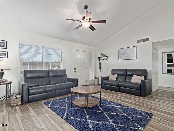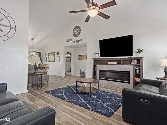 Producing furnished STR! Fully remodeled. Move into this delightful 4-bed, 2-bath home on a coveted corner lot! You'll find an inviting living room boasting vaulted ceilings, a soothing palette, attractive wood-look flooring, and a warm fireplace for chilly evenings. The kitchen features durable solid surface counters, trendy shaker cabinets, sleek stainless steel appliances, a chic tile backsplash, pendant lighting, and a convenient peninsula with a breakfast bar. The main bedroom offers cozy carpeting, a walk-in closet, and a private bathroom for added comfort. Venture outside to the backyard, displaying a full-length covered patio perfect for outdoor relaxation, natural turf with fully automated sprinkler system, and a practical RV gate. This value won't disappoint!