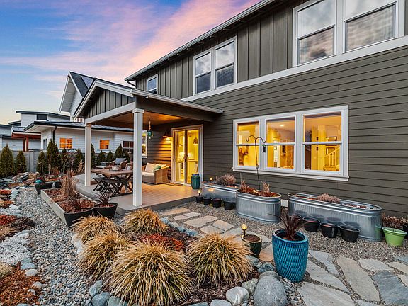 Enjoy the Bend Life from this energy efficient modern farmhouse with mountain views in SE Bend's jewel, Hidden Hills! With Alpenglow Park access just 1 block away, Caldera HS, Bend Community Center and the new Cascade Lakes Brewing all nearby, this part of town is the place to be. A generous and inviting front porch topped with a metal roof welcomes you in to this meticulously cared for home. Warm hardwood flooring leads past a downstairs office or bedroom into the light filled great room with built-ins and a cozy gas fireplace. A well-appointed kitchen boasts plenty of cabinet space, beautiful quartz counters and stainless appliances. Upstairs, a desk nook and wide hall lead to 3 guest bedrooms and a spacious primary suite. The back yard beckons for outdoor entertaining and exploration with flagstone walkways amongst a garden like oasis. Plenty of room for your best patio furniture on the extensive covered composite deck overlooking a burbling water feature. Don't miss out!