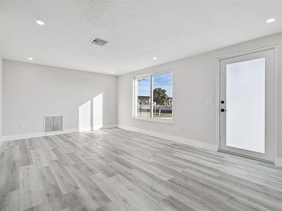 Welcome to your coastal retreat in Sea Ranch on the Gulf! This beautifully remodeled 2-bedroom, 1-bath waterfront home offers a blend of modern finishes and serene canal views, just minutes from direct Gulf access. The bright, open layout features fresh neutral tones, luxury vinyl plank flooring, and recessed lighting throughout. The updated kitchen boasts light cabinetry, quartz countertops, new stainless-steel appliances, and a sleek layout that opens to the spacious living area is perfect for entertaining. The bathroom has been completely renovated with contemporary vanities, stylish tile work, and new fixtures. The expansive Florida room with its wall of windows brings in abundant natural light and showcases peaceful water views, extending your living space year-round. Recent updates include roof (2019), impact windows, and 2025 interior renovations including flooring, kitchen, and bathroom. The large backyard provides plenty of room to add a dock, patio, or pool to create your ideal waterfront oasis. Enjoy quiet evenings watching sunsets over the canal or take advantage of the optional Sea Ranch Civic Association, which offers a private boat ramp and clubhouse access for residents. This home combines comfort, convenience, and coastal living in one of Hudson’s most desirable waterfront communities — move-in ready and waiting for its next owner to enjoy the Florida lifestyle!