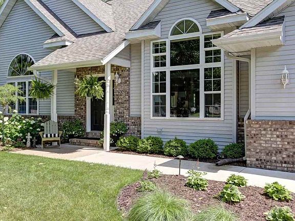 Stunning 2 Story with a Main Floor Master Bedroom. Cathedral Ceilings and an arched window in both the Great Room and Master Bedroom. A Gas Fireplace and Wood Floors adorn the Great Room. The Master Suite features a Walk-in Closet. The private bath has custom painting and Whirlpool Tub. The Deluxe Kitchen includes all the appliances (refrigerator is new). Dining area accommodates your oversize table. French doors lead to the Four Season Sun Room.Two main bedrooms and a full bath complete the upper level. There is 1242 finished square feet in the Lower level which includes a pool table plus a foosball table and bar. Most of the interior of the home has been newly painted. It has a main floor laundry too! This Open Concept Home is sure to be just what you dreamed of owning. Enjoy the Wooded Lot and the Three Car Garage.
