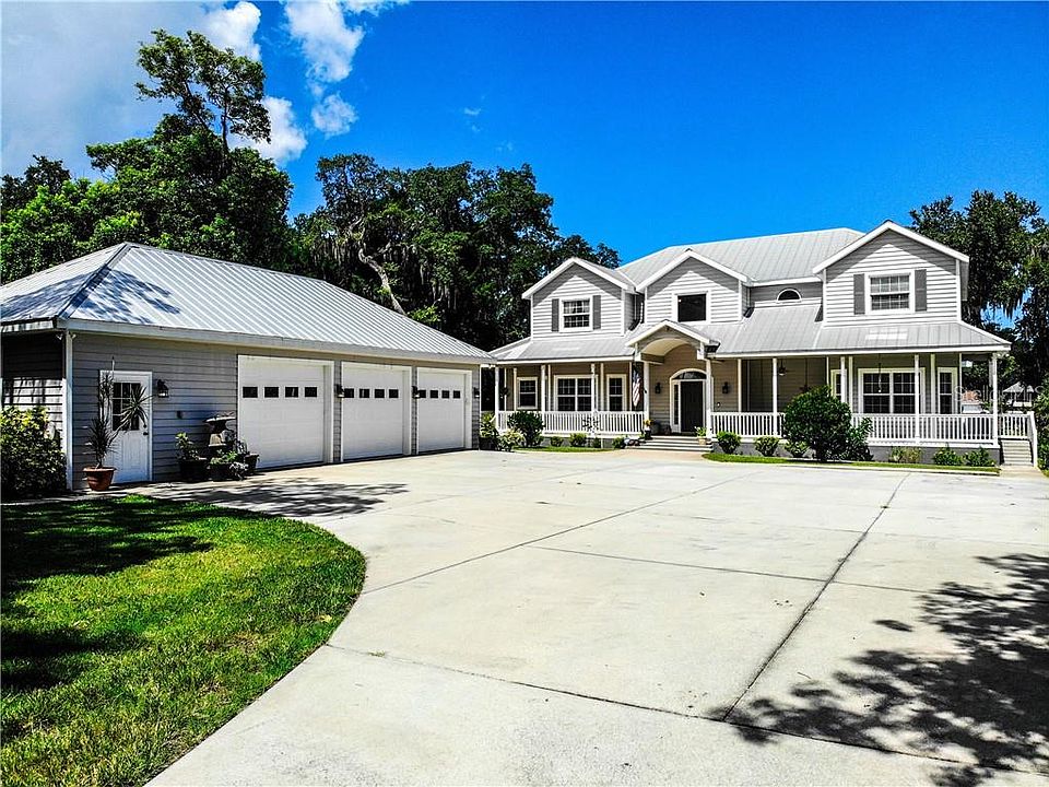 Minutes away from beautiful downtown New Port Richeys' restaurants, shops, parks and night life, you will find this stunning two story pool home on the peaceful Cotee River. You will be greeted by a long driveway and a welcoming wrap around porch. Inside you will find the formal living/dining room with two story ceilings and views of the pool and the river. The kitchen features quartz counter tops, large walk in pantry, food prep island, over sized refrigerator and freezer with an open floor plan leading to the spacious family room. The first level includes the master suite with a newly remodeled master bathroom. Down the hall there is a den/office which includes its own private entry. The second floor you will find four large bedrooms and two bathrooms. There is a detached three car garage with a workshop. Plenty of parking for your RV with electrical hookup, boat and golf cart parking. The backyard includes a 10K lb. boat lift, a composite wood floating dock and a kayak launch with a concrete sea wall running the length of the 95' river frontage. Too many extras to list. Hurry and make an appointment to see your dream home.