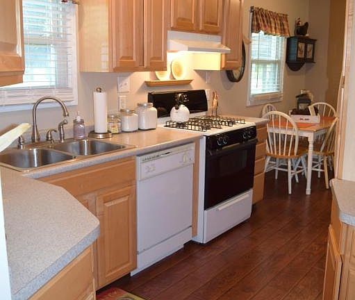 Beautifully renovated ranch home offering .85 of an acre lot! Maple cabinets in inviting kitchen with laminate wood flooring into dinette & mudroom. TWO Spacious living areas - both very relaxing and offering great space! 3 Bedrooms & 2 full bathrooms with tile floors, tastefully decorated throughout! Covered front porch and back porch! Natural Gas! New carpet 2016, woodfloors 2015, H20 tank 2015, roof 2008, Since 2000 - plumbing, electrical, furnace, & central air! Built in desk in family room! - Home Sweet Home!-