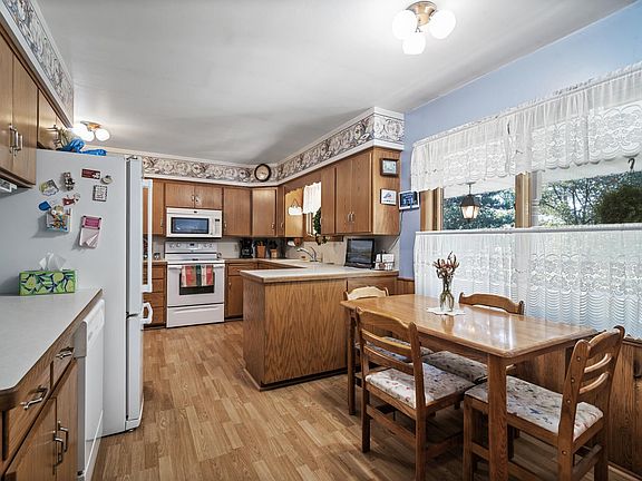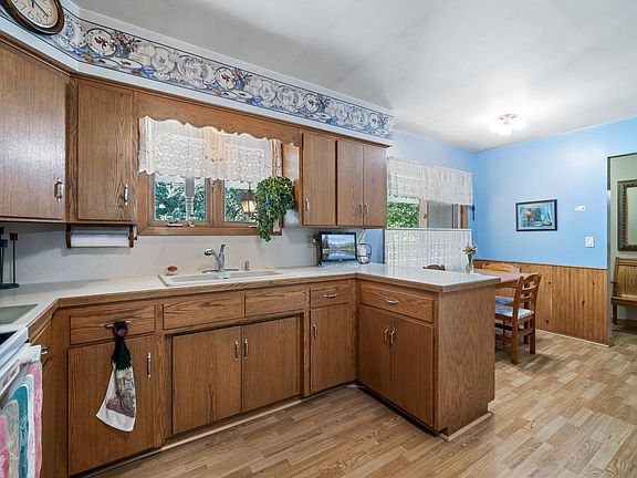 Classic rambler in great condition located on a beautifully treed 1/2 acre lot in town. Everything has been taken care of very well, lots of space, no small rooms! Main level has great sunny kitchen with plenty of cabinets and an eat in nook. Large living room and dining area are spacious and ready for your personal touches. Huge primary bedroom and second bedroom with full bath finish out the main level. Lower lever has great walkout family room, bedroom and 3/4 bath, laundry, mechanical, storage and pantry area. You will fall in love with the setting in the mature oaks on quiet Oak Circle. Great neighbors and super convenient to everything!