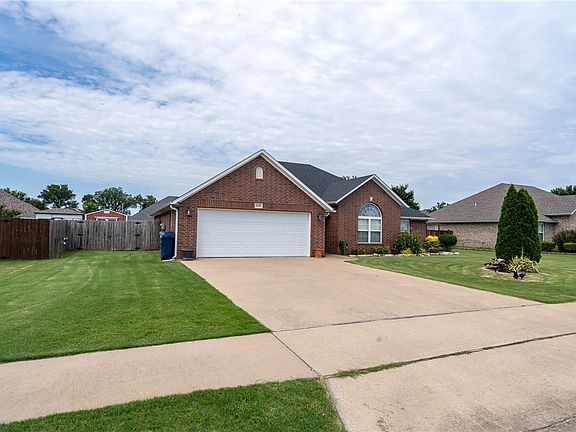 Beautiful WELL MAINTAINED all brick home in a PERFECT location! Located near everything Siloam Springs has to offer and easy access to (412) and minutes away from I-49! All electric, 4 bedrooms, 2 bath, split floor plan home. This home has a very nice bonus room with lots of room to play and entertain. kitchen features open eating area and granite counter tops, island, pantry, and built-in desk area. Large master suite with trey ceilings, his and her walk-in closets, and master bath features a jetted tub, dual vanity, and separate shower. Nice large Shed, extra storage in attic that is floored, and oversized garage. Large Back yard! No Carpet & entire home has been freshly painted. Don’t wait, make your appointment today.