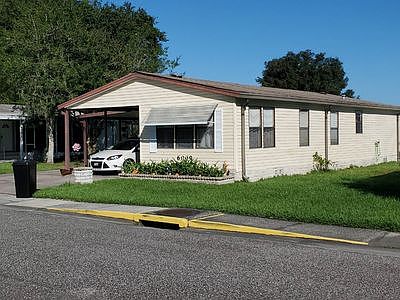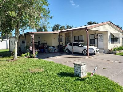 Unique 2 bedroom 2 bath home in upscale 55+ community. Master bedroom is approx 15x15 with 2 walk-in closets, with double doors leading to updated master bathroom. Second bedroom is about 9x12, also with large walk-in. A daybed is included with the sale. A galley kitchen with a "farmer's sink" granite countertops (also in both bathrooms) dishwasher and 3door refrigerator with working ice and water dispenser in the door. The guest bathroom also has updated sink. All floors are solid and the roof and air conditioner are fairly new, and this is a smoke-free home. Moving into an open living room and dining room. A large table wooden with 6 chairs and extra leaf will stay with the home if you like. A separate laundry room(located across the small porch) also has central air and heat. The extra-long, extra-wide driveway can easily hold many vehicles you might have. A walkway between the house and shed can also be used for storage as it is covered by the large carport, not found in most homes. The large shed also has a nice workbench and 2 nice windows for ventilation. I am hoping for a quick sale for many medical issues I have. I want to move closer to my son in Orlando and am eager to get this move done. I have many things packed already so it is possible for an early possession date. You must meet the approval of the park before purchasing a home. This is required by Forest Lake Estates. Many activities are available and the neighbors I have are really great. If you are looking for a wonderful home you may have just found it!!