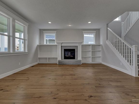This home, designed as an updated craftsman style and built by Stone Bridge Homes, features warm finishes and a unique floor plan that's sure to impress. The foyer opens up into a an airy great room, crowned with built-in shelving around the fireplace. The kitchencomplete with white painted cabinets, slab quartz countertops, and stainless steel appliancesand dining area are situated just opposite the fireplace. Enjoy additional space in the garage for use as a shop, for hobbies, or for storage. On the upper level, the master suiteincluding two separate walk-in closetsoverlooks partial mountain views.
