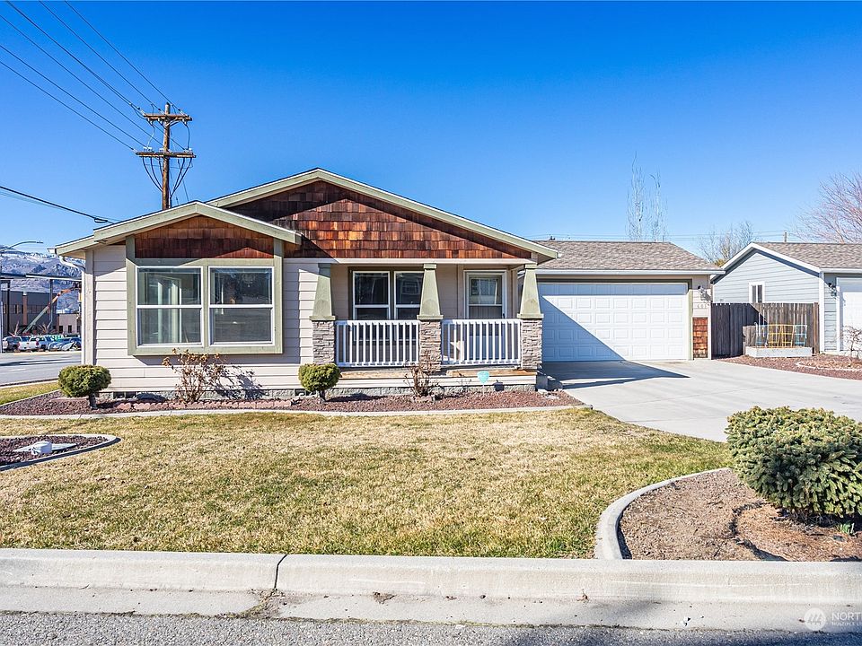 Welcome to 601 10th St. 2008 Clayton built manufactured home sits on corner of quiet neighborhood. Spacious two car garage with laundry room entrance. Vaulted ceilings in living room and dining room. Kitchen space in great shape with appliances staying. Primary bath equipped with double sink and full shower. Carpet allowance from seller at closing.