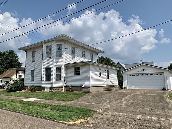 Situated on a double, corner lot in town, this two-story, traditional style home is within walking distance to the park front, restaurants and schools. The large front porch provides a welcoming entrance to the home. Upon entering the foyer, a staircase to the left leads to 3 bedrooms and a full bath upstairs. To the right is the living room, featuring a gas fireplace and turret-style windows. From there you pass through the dining room to the spacious kitchen, which has a good layout. The first floor also offers a family room, currently used as an office. With a half bath and closet, this space could, with a bit of imagination, be transformed into a master bedroom. Hardwood floors lie beneath the carpet throughout most of the house, excluding the kitchen. The partial, unfinished basement provides ample storage and a convenient side entrance door. A private patio can be accessed off the kitchen. The 2-car, unattached garage has electricity and a side-street entrance. A small portion of the side yard is fenced in and includes an outbuilding for extra storage. Homes in town are hard to find. Make an appointment to see this one today.