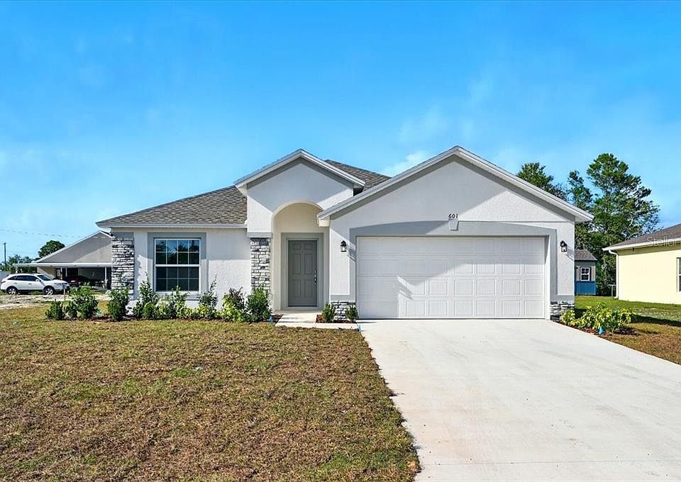 Welcome to this newly built Southern Homes Newport model, a beautiful 3-bedroom, 2-bathroom home located in Frostproof, FL. With no HOA or CDD, you’ll enjoy the freedom and flexibility that comes with this property. Step inside to find a thoughtfully designed open floor plan with woodlike tile and plush carpet throughout. Recessed lighting adds a modern touch while filling the home with warmth and brightness. The kitchen features stainless steel appliances, ample counter space, and a functional layout for everyday living or entertaining. The spacious master suite offers dual walk-in closets and a luxurious master bathroom with dual sinks, a bathtub, and a walk-in shower. Secondary bedrooms are generously sized and perfect for guests, family, or even a home office. Enjoy the outdoors from your concrete slab patio, overlooking a large backyard with plenty of space for future enhancements. Whether you're relaxing after a long day or hosting gatherings, this backyard is ready for your personal touch. Built with quality and care by Southern Homes, this property offers comfort, efficiency, and style. Don’t miss your chance to own a move-in ready home in a peaceful, growing area. Schedule your private showing today!