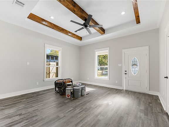 Discover the perfect blend of elegance and comfort in this standout 3-bedroom, 2-bath plus office/flex room home nestled on a corner lot in Bryan, TX. With a thoughtfully designed open-concept layout, this property offers both functionality and contemporary charm. Step inside to the heart of the home, where the kitchen shines with a centered island, providing both space for entertaining and culinary creativity. Custom cabinets with granite countertops add to the sophistication, ensuring storage and style meet effortlessly. The living area impresses with rustic cedar beams, adding warmth and a touch of nature-inspired design. A versatile flex room provides endless possibilities—perfect for a study, playroom, or additional lounge area, catering to your unique lifestyle needs. The primary suite offers a retreat all its own, boasting a beautifully stained tray ceiling that adds an extra layer of luxury to your personal sanctuary. The corner lot provides a sense of openness, complemented by a stamped decorative concrete driveway that extends to both front and back porches, adding curb appeal and a perfect spot for outdoor gatherings or quiet mornings. Schedule your private tour today and envision the possibilities.