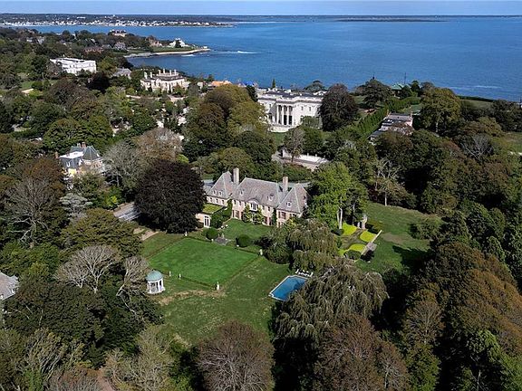 Step into Gilded Age grandeur with this iconic French-style chateau, thoughtfully reimagined for modern luxury. Designed and commissioned for the Drexel family in 1929 by renowned architects Polhemus & Coffin, and inspired by 'La Lanterne' at Versailles, 'Champ Soleil' is a masterpiece of timeless elegance. Located at the South end of Bellevue Avenue this privately sited estate is set on 5.53 acres behind wrought-iron gates and specimen trees. The main residence offers approximately 13,428 square feet of refined interiors, the estate features 7 bedrooms and 8.3 baths, complemented by grand entertaining rooms, a paneled library, a home theatre, and fully modernized integrated high-end systems. The outdoor spaces include manicured gardens designed by landscape architect Unberto Innocenti, a croquet lawn, a 20' × 40' pool, FAA approved heliport, large greenhouse, and expansive terraces for entertaining. A separate two-unit carriage house with additional 4 car garage and workshop on Coggeshall Avenue provide additional accommodations, while vacant land offers potential subdivision opportunity. Meticulously restored and modernized, Champ Soleil seamlessly blends historic character with today’s luxurious comforts, preserving the splendor of Newport’s legendary Gilded Age. A landmark estate representing a rare opportunity in one of America’s premier coastal enclaves.