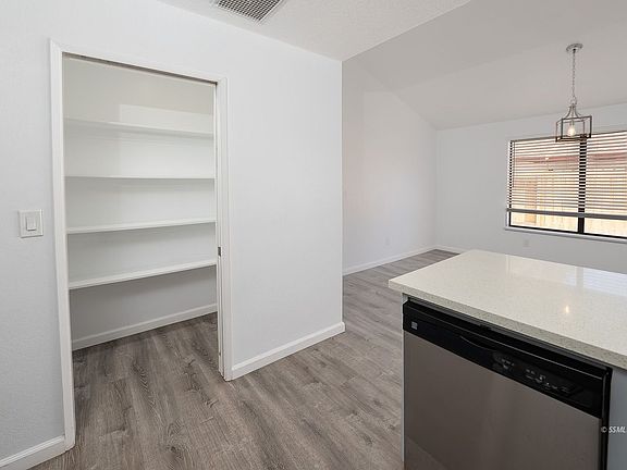 Great three bedroom home! Large living room with corner fireplace. Kitchen has lots of quartz counters , dishwasher, stove and a large walk in pantry. Dining area is open and light. Vinyl plank flooring for easy care in living areas. Nice sized bedrooms, two baths and a large covered patio. Extra concrete and a roomy backyard for outdoor activities.