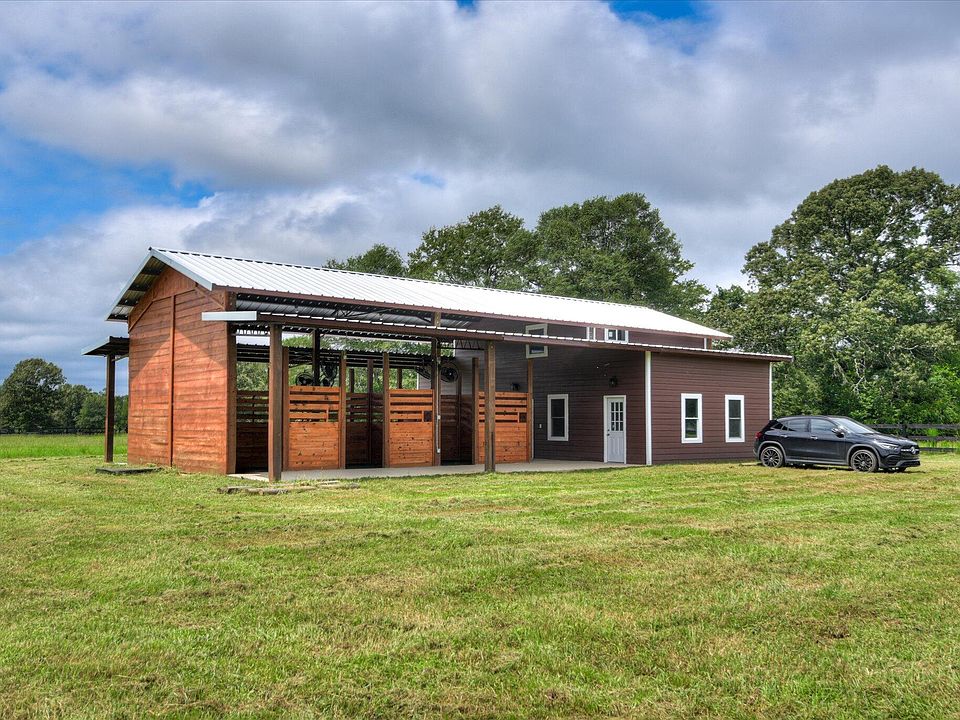 601 Bethcar Church Road is a fully fenced and gated 5-acre property located just minutes from Aiken's premier equestrian venues. This unique offering features an open-breezeway 6-stall barn with mats, fans, and removable dividers for customizable stall sizes. Attached to the barn is a loft-style lounge, creating a comfortable space to unwind. The main level includes an open-concept modern kitchen with brand-new appliances, a combined laundry room, and a full bathroom. The lounge provides generous storage and versatile space for relaxation or entertaining. Upstairs, the loft overlooks the property, offering scenic views and a serene retreat. Additional amenities include a spacious feed/tack room that could also serve as an office, as well as access to a community riding area for training and exercise. A wooded area at the front of the property offers potential for a shaded paddock, while the open layout allows flexibility to add fencing or further customize the land to your specific equine needs. 601 Bethcar Church Road presents a rare opportunity to own a functional, well-appointed equestrian property in a prime Aiken location—ready to be tailored to your vision.