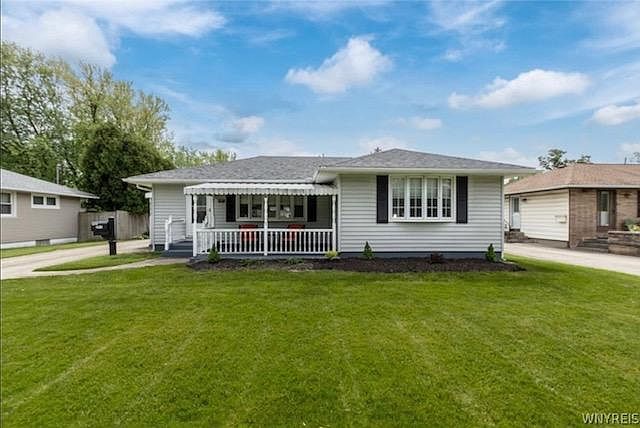 Maintenance-free living! Newly remodeled ranch home with hardwood flooring throughout and plush wall to wall carpeting in the 3 bedrooms. Entire house freshly painted. Kitchen features a large under mount sink, quartz counter tops and all new black stainless steel appliances and modern backsplash. Remodeled bathroom with all new features including tiled shower & floor, new vanity with stone counter, tub and toilet. All bedrooms have California closet built-ins. Covered front porch and beautiful large backyard with detached 2 car garage (with garage door opener) and natural gas hook-up for grill. New roof and newer high efficiency furnace and AC. Large basement (partially carpeted) for ample storage and laundry (washer & dryer on-site). Located in the heart of West Seneca, West Seneca schools, near Town Hall, parks, ice rink, library, shopping and just minutes from the 400 thruway. Absolutely NO SMOKING and NO PETS/ANIMALS! Landlord responsible for taxes, water, lawn and landscape care. Tenant responsible for electric, gas, WiFi and snow removal. Owner pays for water and lawn care. Tenant responsible for gas, electric, cable, internet and snow removal. Only registered & insured vehicles allowed on-site. Absolutely NO SMOKING and NO PETS! Must fill out the Zillow application for consideration.