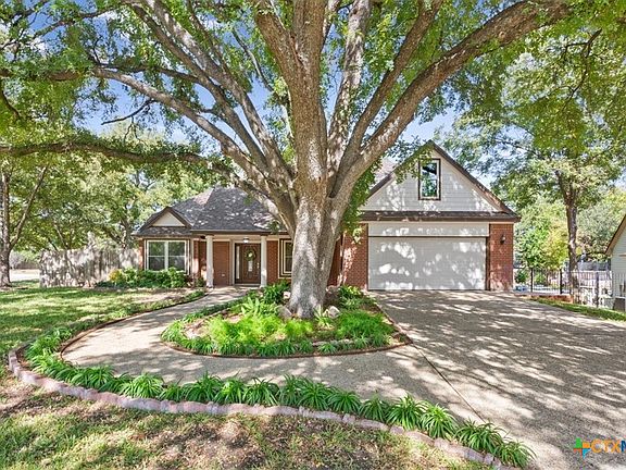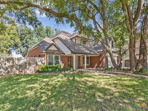 Welcome to this beautiful 4-bedroom, 2.5-bath two-story home on a spacious corner lot in a quiet cul-de-sac, surrounded by mature trees providing shade and privacy. Multiple producing pecan trees add charm and natural beauty. Step inside to genuine hardwood floors, porcelain tile, and high ceilings. The living room features towering windows overlooking a backyard retreat with a large gazebo—the centerpiece of this peaceful, tree-covered setting. The home offers custom built-ins, abundant kitchen cabinetry with granite countertops, and a stunning double-sided gas fireplace. Meticulously maintained with a new 2025 roof featuring upgraded shingles and gutters with leaf guards. Come see this serene property and make it your own retreat.