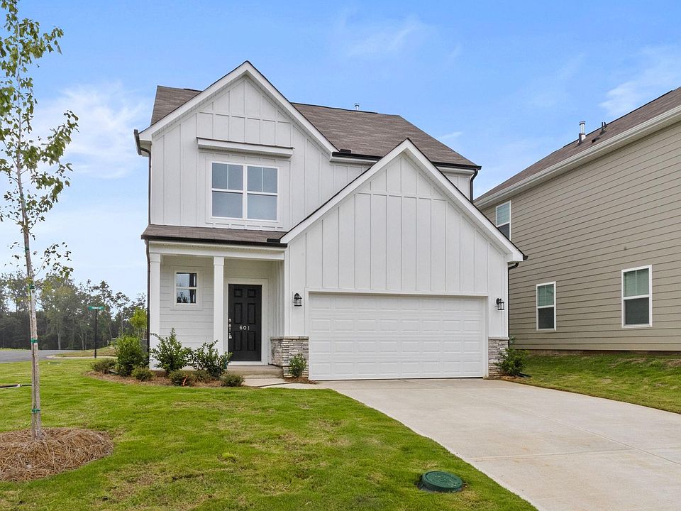Brand New Construction! This 4-bedroom, 3.5-bath home offers spacious, modern living across three thoughtfully designed levels. A defined foyer welcomes you into an open-concept layout that includes a large kitchen, dining area, and great room—ideal for both daily living and entertaining. The kitchen features quartz countertops, stainless steel appliances, a designer backsplash, LED disc lighting, and pendant lights over the island. Step outside to enjoy a covered porch and extended patio for seamless indoor-outdoor living. The yard will be sodded for added convivence. Upstairs, the second level includes a generous loft, laundry room, two secondary bedrooms, a full hall bath, and a spacious primary suite complete with a tiled walk-in shower, garden tub, dual sinks, and tile flooring. The third floor offers a private bedroom and full bath—an excellent option for flexible living space. Additional upgrades include enhanced lighting, trim, and plumbing packages, structured wiring, and a built-in pest control system. The finished garage is drywalled, painted, and equipped with lighting and outlets.