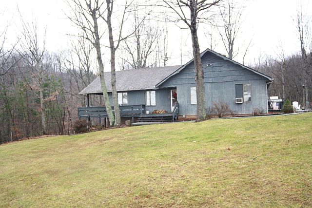 Beautiful property with 70 acres located on border of Franklin and Henry County. This home has lots of personality with 3 bedrooms and 2 full baths. A deck surrounds 1/2 of outside with views of a fully stocked 2 acre pond. Large bedrooms, living room has a roaring fireplace (also a buckstove in basement) to keep you warm in winter. Master bedroom and bath are unique with large areas (bed remains with house it is bolted to the floor). Property has lots of woods for hunters and nature enthusiast. Close to Martinsville, Roanoke and Smith Mountain Lake. Map of property found at listing office.
