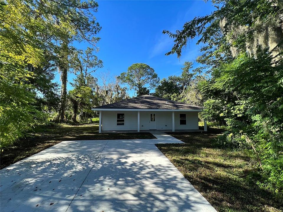 Brand new home in Bunnell Florida. 3 bedroom split plan with covered front and back porches! Large driveway to accommodate several vehicles. This home has a separate laundry room with a brand new washer and dryer, also has brand new LG refrigerator in the kitchen. Kitchen is very large with bar type countertop, pendant lights and many cabinets, also a large pantry and built in microwave. Off the kitchen is a separate dining room. Master suite has large bathroom with big walk in shower. New construction all complete and ready for the someone to enjoy.