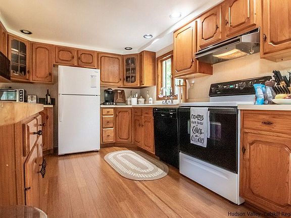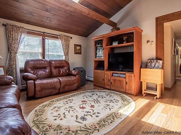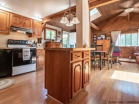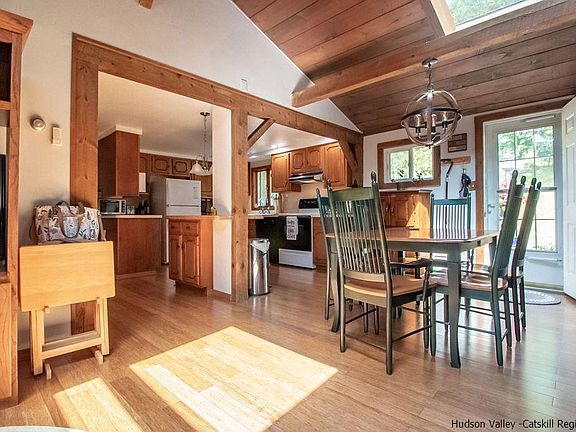Warm and inviting home features large great room addition that is comprised of roomy kitchen, large dining area and cozy living room area with vaulted ceiling and skylight, bamboo floors and woodstove. If you need more space there is a very large formal living room that has room for another dining area. There is a first floor bedroom and first floor bath/laundry and a delightful enclosed porch. The 2nd floor has 4 rooms and a full bath. Sweet deck/patio area off great room. Well maintained inside and out. Pretty yard with marshy area to the side that houses lots of wildlife. Great location minutes away from Rosendale, Hurley and Uptown Kingston.