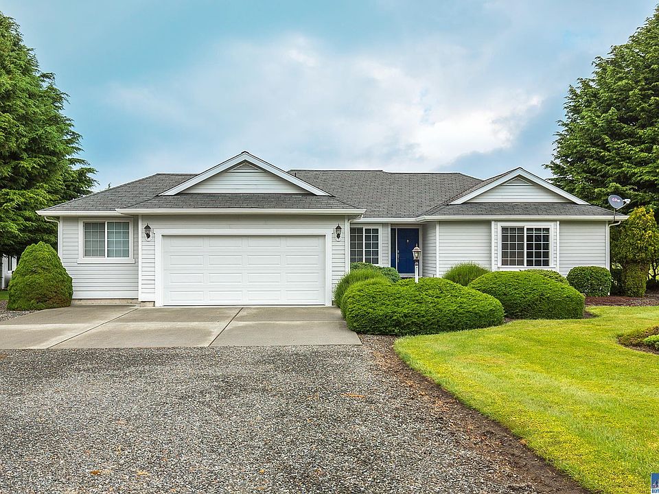 One level living in quiet country setting near Cline Spit beach & boat launch. Large acre+ lot has unobstructed Mountain View w/ a peek-a-boo water view and Mt. Baker from the north side of home. Home is well maintained and has been "gently" lived in. Sellers were part-time residents. Pristine landscaping designed to be low maintenance with options for more gardening. Additional features include a bright sunroom, water softener, jetted tub, large walk-in closet & lots of storage. This home is move in ready!