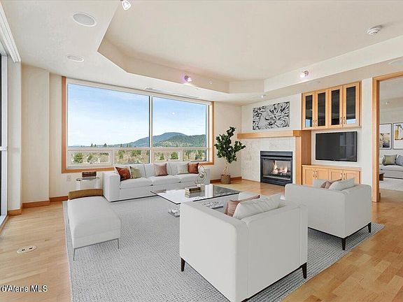 Luxury downtown Coeur d'Alene condo featuring breathtaking panoramic views of Lake Coeur d'Alene, Spokane River, and surrounding mountains! This condo features an open concept living and dining area, gorgeous 15-foot kitchen island, gourmet kitchen with high end appliances, granite countertops, wood flooring and travertine tile throughout. The elegant master suite offers its own fireplace, walk-in closet and large bathroom with jetted tub and large walk-in shower. Every room is wrapped with beautiful windows that feature high end, luxury motorized fabric window coverings. Other features include your own private concierge, large private two-car garage with epoxy floor, private gym, and a rooftop putting green that you can reserve for private events. A luxurious lifestyle awaits you on the 15th floor, high above the downtown streets which are full of shopping, restaurants, live music, beaches and more.