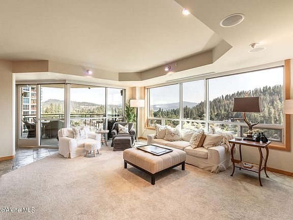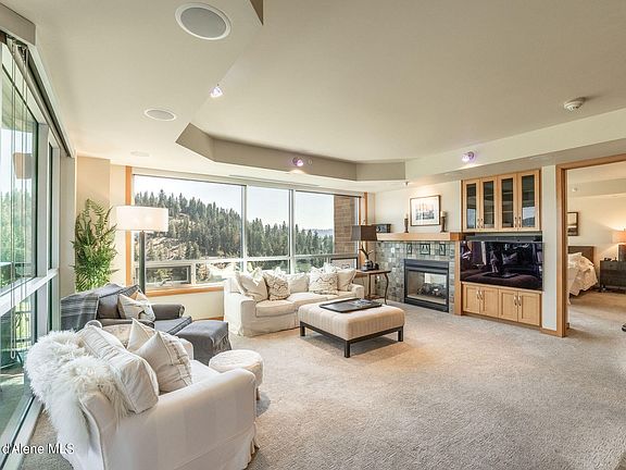 10th FLOOR PARKSIDE LUXURY! Turnkey unit with 2 great views of Lake CDA, Tubbs Hill, & McEuen park! Wake up to a great lake view from the spacious primary suite, fabulous great room with Gas FP and amazing views, large, covered patio with great lake views. 3 bedrooms, 2 baths, 2,328 SF, high-end kitchen with massive island and breakfast bar, high end appliances, tile floors, upgraded carpet, and a private and enclosed 2 car garage. Excellent building amenities including large outdoor putting green and community patio and world-class exercise facility with 4 private locker rooms and so much more. This unit offers security, privacy and luxury with fabulous views!