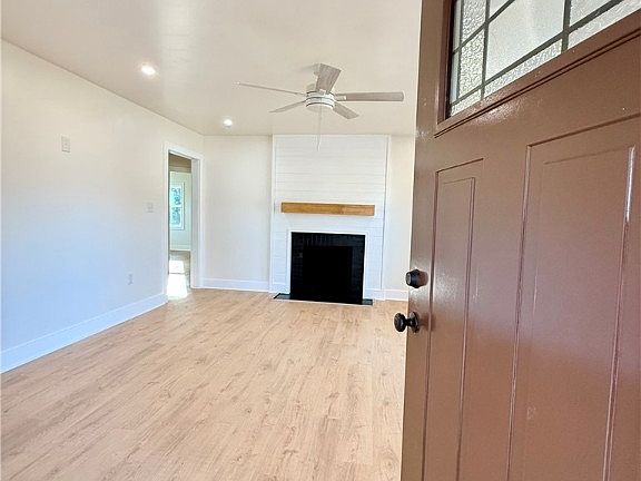 Step inside to a bright and inviting living room showcasing a stunning fireplace with a classic mantle, perfect for cozy evenings. The home has been thoughtfully updated inside and out, blending modern upgrades with timeless appeal.