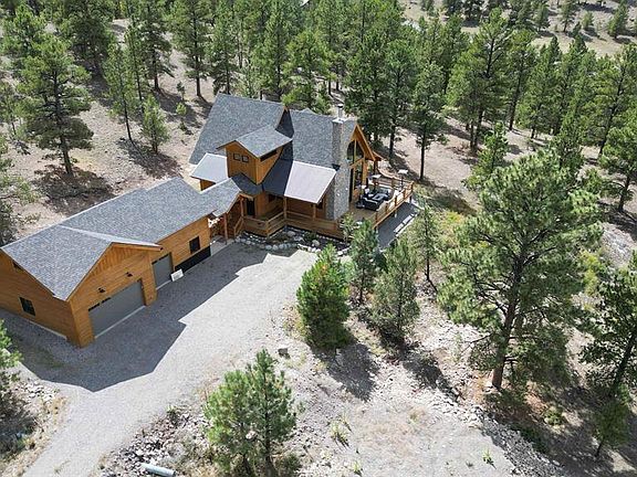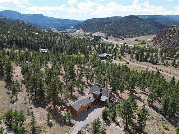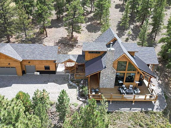 Your Colorado dream home awaits in the heart of the breathtaking San Juan Mountains. This stunning 2,429 sq. ft. home on 2.5 acres offers both luxury and comfort, with a heated three-car garage, bonus room for fitness or game days, and stairs leading to a full attic for extra storage. Step through the breezeway to the main entrance, surrounded by a 1,200 sq. ft. wraparound deck with unforgettable mountain views. The covered side decks are finished in beetle-kill pine, and a private nook features a built-in saltwater hot tub—perfect for soaking as deer wander by. The exterior is finished in rustic rough-sawn pine for timeless Colorado charm. Inside, the open-concept design blends kitchen, dining, and living spaces seamlessly. Custom Knotty Walnut cabinetry flows through the kitchen, mudroom, laundry, and baths, paired with durable hybrid marble countertops. The kitchen shines with top-of-the-line stainless-steel appliances, including a wine fridge, and a sliding barn door leads to a spacious walk-in pantry. A River Rock wood-burning fireplace warms the great room, while radiant floor heating keeps every step cozy. The main level offers two bedrooms, a guest room with full bath and a primary suite with breathtaking views, direct deck access to the hot tub, a soaking tub, and a large tile shower. Upstairs, a loft doubles as an office or second living area, with an additional bedroom and full bath. Vaulted ceilings throughout the home showcase rich beetle-kill pine. Outside, a cleared and prepped site with plumbing and electrical is ready for your future guest house. Adventure is right at your doorstep: Wolf Creek Ski Area (17 miles), Rio Grande Golf Club & Resort (4 miles), Creede Repertory Theatre (21 miles), and Alamosa Airport (47 miles). World-class hiking, biking, rafting, and Gold Medal fishing on the Rio Grande River complete this dream lifestyle. This one-of-a-kind property offers the perfect blend of mountain serenity and modern luxury—schedule your showing today!