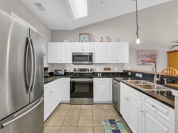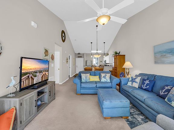 Welcome to this fully furnished, top-floor 2-bedroom, 2-bath condo located in the highly sought-after gated community of Ocean Keyes, just a few blocks from the beach. This spacious unit combines comfort, convenience, and coastal charm in one ideal package. Featuring vaulted ceilings and an open-concept floor plan, the condo is filled with natural light and offers a seamless flow from the kitchen to the living and dining areas—perfect for everyday living or entertaining. The kitchen is well-appointed with stainless steel appliances, granite countertops, and ample cabinet space.  The primary suite provides a private retreat with generous closet space and an en-suite bath, while the guest bedroom comfortably accommodates family or visitors. Step outside to the large screened-in porch, where you can enjoy peaceful views of the pool and mature shade trees—an ideal spot to start your morning or relax in the evening. Community amenities include: multiple pools and hot tubs with grilling areas, fitness center, tennis and pickleball courts, walking and biking paths, and both day and night security guards. Golf carts are permitted, making it easy to reach the beach, Main Street entertainment, dining, shopping, and local festivals. Whether you’re looking for a primary residence, vacation getaway, or investment property, this condo offers the perfect blend of location, lifestyle, and low-maintenance coastal living.