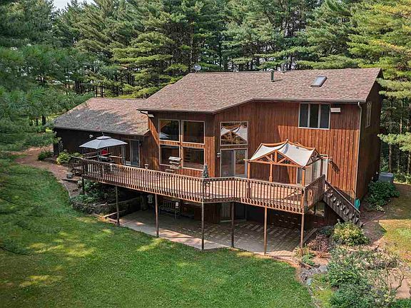 Paradise on approximately 31 acres (part tillable & part wooded). Huge Great Room, hardwood floors, wood burning stove, big Kitchen with updated appliances, walk-in pantry, Mud Room, main floor Laundry. 2nd floor Master Bedroom with loft sitting area, double vanity with granite, large ceramic walk-in shower. Heated floor. 2 Bedrooms and full Bath main floor. 4th Bedroom, 3rd Bath, walkout lower level. Furnace operates on gas and electric, Generac generator switches to LP upon power outage (Heat pump also for heating & cooling $ saving & efficiency). Walk-in safe. Surrounded by forest preserve. Great for the gardener, outdoorsman, hunter and those seeking privacy and tranquility.