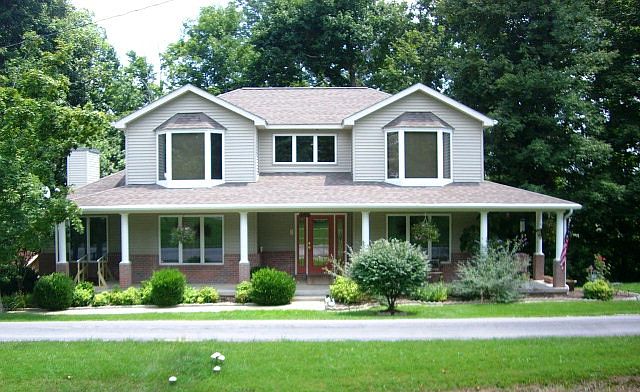 WOW! Living here is like being on a vacation all year. This elegant, comfortable lake front home sits on three lots. The large 3 car detached garage offers plenty of room for your cars, a boat, and your golf cart (which is the preferred mode of transportation in the valley). There's an unfinished basement for storage and a storm safety area. Take in the views from the large front porch or spacious back deck. With permission from the CORE or your neighbors, you can add steps and a dock or build on to an existing dock. Indian Valley has it's own boat ramp. Listed below appraised value.