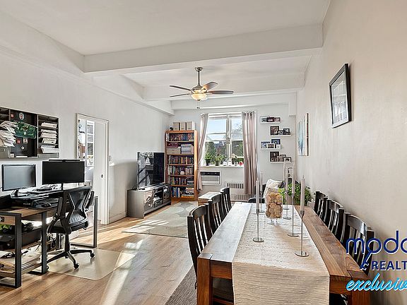 Welcome to The Presidential – an iconic mid-century cooperative tucked away in the leafy enclave of Spuyten Duyvil, just minutes from Manhattan. Step into this fully renovated 2-bedroom residence that channels the vibe of a chic NYC loft, featuring soaring beamed ceilings, wide-open living spaces, and abundant natural light. The chef-inspired windowed kitchen is brand new, with timeless shaker cabinets, sleek quartz countertops, and stainless-steel appliances—including a French-door refrigerator, dishwasher, gas range, and microwave. The primary suite easily accommodates a king-size bed and boasts a private en-suite half bath, double corner windows, and ample closets. A windowed main bath with with updated modern fixtures offers a spa-like retreat. With a thoughtful split-bedroom layout, the second bedroom sits on the opposite end of the apartment for maximum privacy. Throughout, you’ll find new wide-plank LVP floors, oversized closets, and meticulous finishes. This home represents an unparalleled value in Spuyten Duyvil - where the tranquility of tree-lined streets meets the convenience of quick Metro-North and subway access to Manhattan. An opportunity not to be missed!