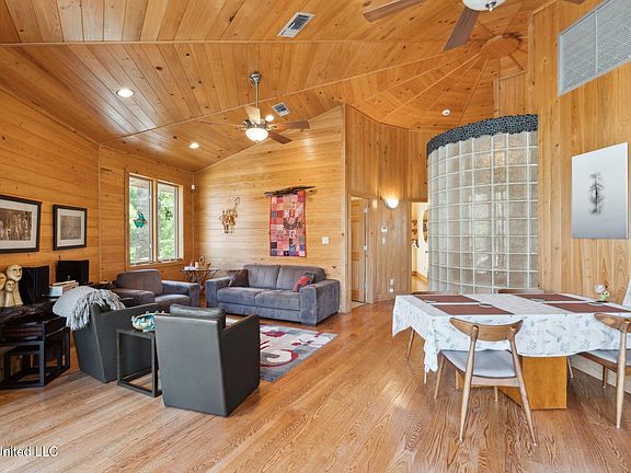 Available for the first time since the sellers constructed the residences, this is one of the finest and unique property offerings in Pearl River County in modern history. Featuring two custom built homes both situated on the banks of the serene and beautiful Hobolochitto Creek. Peace and privacy abound as you're nestled among 107.54 acres with approximately 4,000 linear feet on the creek. This property is filled with blooming magnolia trees, pines, oaks and ancient cypress trees. The sellers have lovingly cared for both the land and houses throughout their ownership, having laid out paths to enjoy the nature and preserved and improved the waterfront for each residence with steps for easy access to the sandy bottom waterway that offers fishing, swimming and tubing.There are also two ponds on site that make for great canoeing. One house, known as ''The Loghouse'', was built in 2000 and features 3 bedrooms, 2 bathrooms, an updated kitchen and open floor plan to the breakfast room and living room adorned with a soaring ceiling and gorgeous wooden walls. Furnished to sleep the whole gang with a primary suite, a guest room and third bedroom with bunk beds. Outside find a large deck running the entire width of the house to enjoy BBQs and views of the creek, cypress stumps and wildflowers and storage below. The second home, known as ''The Birdhouse'' is an impressive circular structure, also built on the bank of the Hobolochitto; it is completely surrounded with windows and glass doors on the inside that offer unobstructed views of the water and nature. Outside, find a wrap-around porch. With two beds, two baths with jetted tubs, a kitchen that offers an island with a handmade, natural wood bar, overlooking the impressive living area with nine foot cypress walls and oak floors in most areas. The signature feature of the Birdhouse is a massive, glass shower for the primary suite that is positioned in the middle of the house. You must see this one of a kind structure to fully appreciate it. Each home is separately metered for power with its own septic systems - an artesian well supplies the water to both homes. Note the total room count/beds/baths, total sq. footage, etc, equal the total of both houses. Sketches of each home are available. This hidden gem is located just ten minutes away from the Picayune city limits offering convenience in shopping and dining options. With I-59 being just 12 miles away the trip to New Orleans, the Mississippi Gulf Coast, St. Tammany Parish and Hattiesburg are all quick and easy trips. Ideal for a family vacation compound, corporate retreat, incoming producing opportunity or a combination of uses. Sellers will not consider a subdivision of the property or multiple sales. For years, sellers have used property for both a personal, second home and as a short-term rental property.