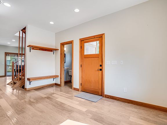Welcome to this exceptional custom-built home, where luxury, sustainability, and expert craftsmanship come together in a private, scenic setting. Designed and built by a custom home builder, this residence is a showcase of high-end finishes and cutting-edge efficiency. The open-concept kitchen and living space is perfect for entertaining, featuring quartz and granite countertops, KraftMaid wood cabinetry, and engineered walnut hardwood floors. Large Milgard Performance windows flood the home with natural light, creating a bright and inviting atmosphere. Designed for maximum efficiency, this home boasts:- 4.2KW solar array (11 modules)- Blower door-tested airtight construction (>1.0 ACH)- R49 roof insulation, R25 walls, and an electric heat pump HVAC system (95%+ efficiency)- Whole-house fresh air intake/exchange system- Electric heat pump water heater & water recirculating system. Downstairs, the finished basement offers a versatile living space with polished, sealed concrete floors, R15 insulation behind walls, and radiant heat flooring ready for hookup. With a separate entrance, this space has high potential for conversion into a private rental unit, offering a fantastic opportunity for additional income. The detached insulated shop/garage is ideal for a studio, workshop, or creative space and features a 100-amp panel and an EV charger. The attached garage also includes an EV charger and high-efficiency insulation (R25 walls, R30 roof). Situated in a private location with beautiful territorial Gorge views, this home offers both seclusion and proximity to downtown. Additional features include whole-home CAT7 wiring, speaker pre-wiring, and a 60-amp hot tub disconnect. Don’t miss this one-of-a-kind high-performance home with income potential—schedule your tour today!