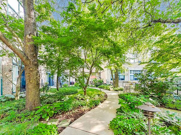 ***Multiple offers received. Highest and Best Requested by Monday 8/25 at 5pm.*** Welcome to the best kept secret in SE Evanston! Tucked away just around the corner from Hoosier Mama Pie Company and the Metra/Purple Line sits the amazing former Nabisco Cookie Factory! Now called the "New Biscuit Lofts" this beautiful historic building has been renovated into one the the most unique contemporary condo complexes in Evanston. This extra-wide three bed, two full bath (plus half bath) modern triplex is truly MOVE-IN READY ( freshly painted and new carpet) and faces south overlooking the beautifully landscaped common courtyard garden with dedicated patio in front. This first floor unit is one of the largest in the complex and is easily reached up a flight of stairs or from the heated garage via elevator. Three bright levels all flooded with natural light make this dramatic space feel more like a townhome than a condo. Classic concrete loft interior details including breathtaking 14' high ceilings, GIANT windows and exposed brick accents. HUGE & BRIGHT open concept living/kitchen/dining room is the entire first floor! Gourmet kitchen with TWENTY raised panel shaker style cabinets that's nicer than most homes was extensively upgraded since the owners moved in with newer stainless steel appliances including a Bosch dishwasher, brand new GE Stove and sleek LG ThinQ refrigerator. Granite counters plus a butcher block peninsula perfect for your friends and family to gather around while you cook for easy meal prep and entertaining! Incredible counter space for all your gadgets plus a pantry! The second floor has a nice split bedroom floorplan with a hall bath next to the BIG second bedroom down the hall from the sunny SPACIOUS primary suite with almost floor to ceiling windows with custom black out window treatments, a wall of closets plus a room size attached full bath with double vanities and a brand new custom glass shower enclosure. Third level private bedroom is a true artist's dream loft, home office or flex space with vaulted ceilings, cool industrial details and loads of light. Too many upgrades to mention! More storage than many single family homes! This space is more beautiful in person than in the photos! Super clean, professionally managed, well established association that's pet and family friendly! Walk to Metra, Purple line, NU Shuttle and Lake, beach, trails.