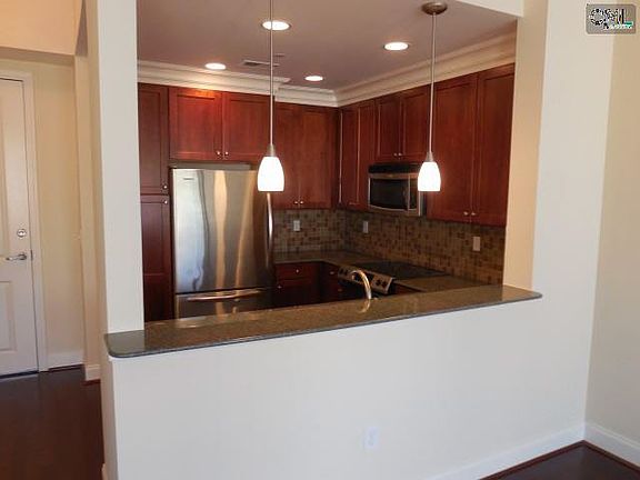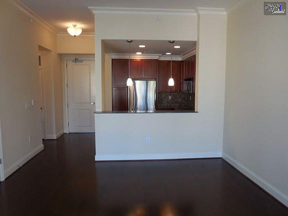 Highly sought after Adesso unit now available. Pretty hardwood flooring, crown molding, high ceilings & great natural light make these units so popular. Lovely granite kitchen w/bar area & stainless appliances. Bedroom has high ceiling, private bath w/double vanity, garden tub & big walk-in closet. Living room opens to balcony w/great downtown views. Security, parking, pool & fitness center, Adesso has it all!