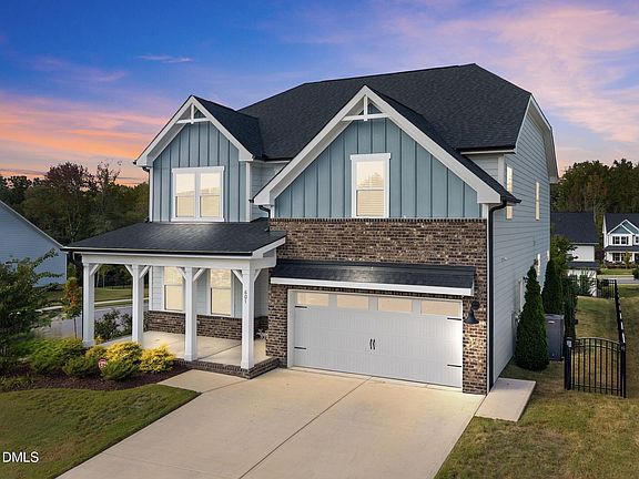 Welcome to 601 Marion Hills Way, a stunning home in the sought-after Glenmere community of Knightdale! Residents enjoy outstanding amenities including a pool, playground, and recreational spaces—perfect for an active lifestyle. Step inside to a bright foyer accented with upgraded LVP flooring, crown molding, and a modern hanging light, flanked by a home office with glass French doors and a transom window. The open-concept family room, dining area, and kitchen create a seamless flow, enhanced by abundant recessed lighting. The gourmet kitchen is a chef's dream with painted flat-panel cabinetry, quartz countertops, chevron tile backsplash, and a large center island with pendant lighting. Stainless steel appliances include a GE 5-burner gas cooktop, built-in wall oven, microwave, and dishwasher. A huge walk-in pantry with custom wood shelving adds exceptional storage. The family room features a sleek linear gas log fireplace framed by recessed niches with upper windows, ready for future built-ins. Just off the dining area, the screened porch extends to a spacious concrete patio overlooking the black aluminum fenced backyard—ideal for entertaining. Upstairs, the expansive owner's suite impresses with a tray ceiling, electronic blinds, recessed lighting, pendant reading lights, and a ceiling fan. The spa-like bath showcases marble-style tile floors, a freestanding soaking tub, a separate seamless glass shower, and dual vanity. A custom California closet with painted wood shelving, built-in drawers, and metal hanging rods completes the suite. Three additional bedrooms offer generous space and California-style closets with built-in dressers. Additional upgrades include: Turned hardwood staircase with painted white pickets and stained handrails, security system, electronic blinds in main living and owner's suite, Upgraded LVP flooring on the first floor, and screened porch. Don't miss the opportunity to make it yours—schedule a private tour today!