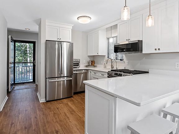 The Kitchen, flooring and many appointments and appliances are relatively new, having been installed within just the last 1-2 years making for easy livability. The backyard opens up to a large deck with wooded views that also extends to views of the pond and wildlife.