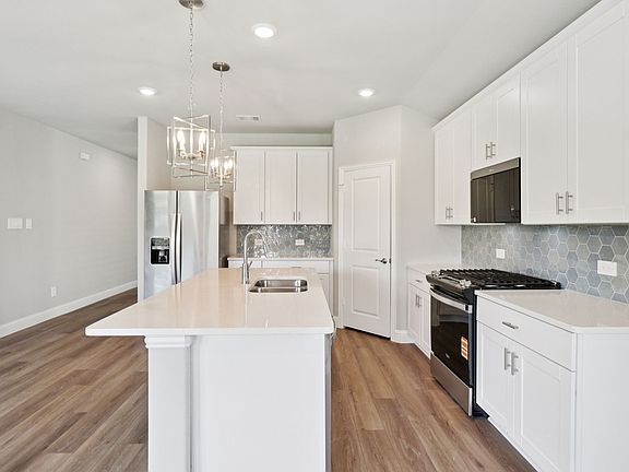 Brand new, energy-efficient home available by Oct 2025! Sip your morning coffee at the Henderson's convenient kitchen island overlooking the dining and family rooms. In the primary suite, elegant sloped ceilings complement the sizeable space, including ensuite with dual sinks and large walk-in closet. Ditch your long commute with quick access to McKinney, Frisco, and Richardson on US 380 and spend more time doing what you love. Play fetch at the nearby dog park or bike the miles of Simpson Crossing’s trails and greenspace. Kids will love the community playground and resort-style pool. We also build each home with innovative, energy-efficient features that cut down on utility bills so you can afford to do more living.* Each of our homes is built with innovative, energy-efficient features designed to help you enjoy more savings, better health, real comfort and peace of mind.