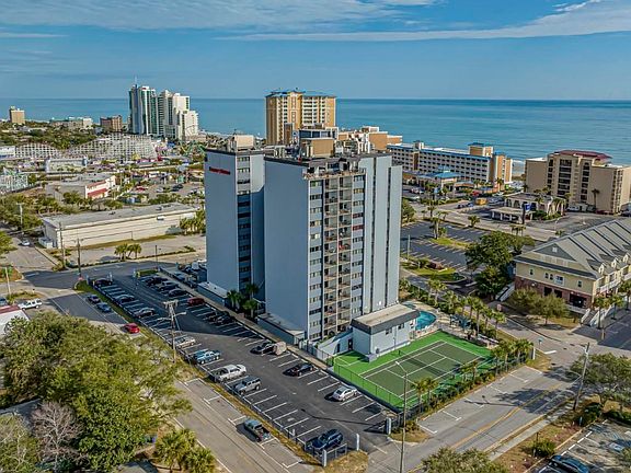 Welcome to this fully furnished & move-in/rental-ready 2 bedroom, 2 bathroom condo at the Holiday Towers in the heart of Myrtle Beach. The kitchen is equipped with all updated stainless steel appliances, upgraded granite countertops, a large stainless sink, and an open window that looks into the main living and dining areas, giving a more open concept. The living room features a large sliding glass door, leading to your 1st floor patio with easy courtyard access. Each bedroom includes a TV, plenty of closet space and access to its own bathroom with upgraded vanities and fixtures. There is a laundry room in the unit with a washer and dryer included, for even more added convenience, along with new LVP flooring throughout, and a digital thermostat. Holiday Tower has been recently painted & refreshed, and offers great amenities including an outdoor pool, hot tub, basketball and tennis courts, grills, fitness center, gated-private parking, and more! Perfectly situated near all of the Grand Strand's finest dining, shopping, and entertainment attractions, and on the second row from the ocean with just a few steps from your door to the beach. Whether you are looking for an investment opportunity or a vacation get away, you won't want to miss this- Schedule your showing today!