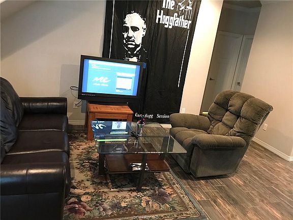 Available August 6, 2019: HUGE 5 bedroom 5 bath duplex home that's biking distance to Texas A&M campus AND on the TAMU Bus Route. This home has 2 Living room areas. Bedrooms have large walk-in closets. You'll find Granite countertops, hardwood floors, sleek black cabinets, and a large kitchen bar island. This home also has a 2nd story balcony & fenced in backyard. All kitchen appliances are provided including a Washer and dryer.