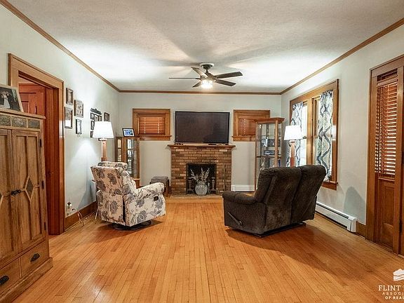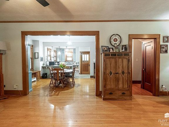 Wood fireplaceDining roomWood floorsOriginal trim and doorsLarge covered front porchCorner lotTwo central ac units
